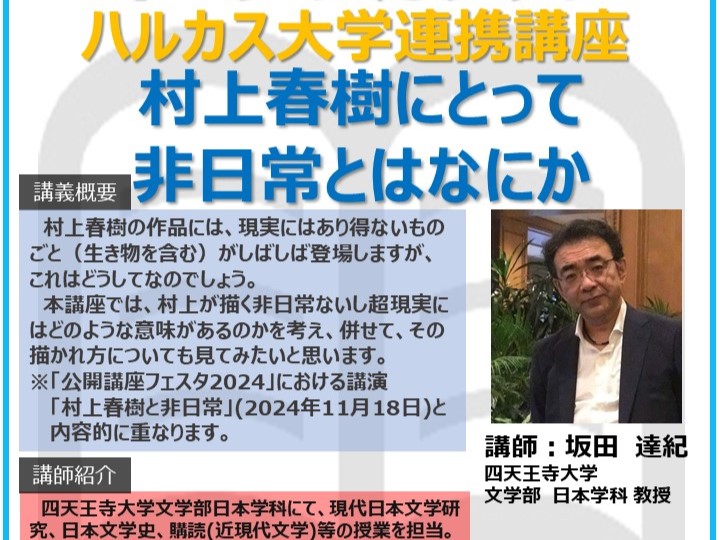 文学部日本学科坂田教授によるハルカス大学連携講座「村上春樹にとって非日常とは何か」を開催