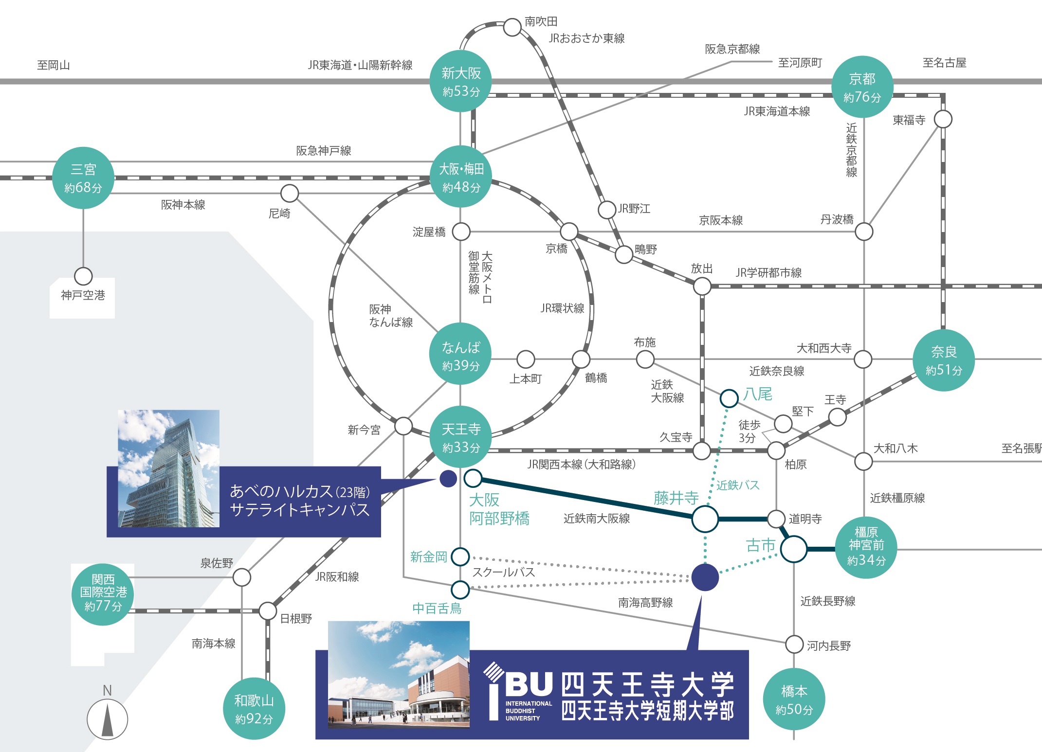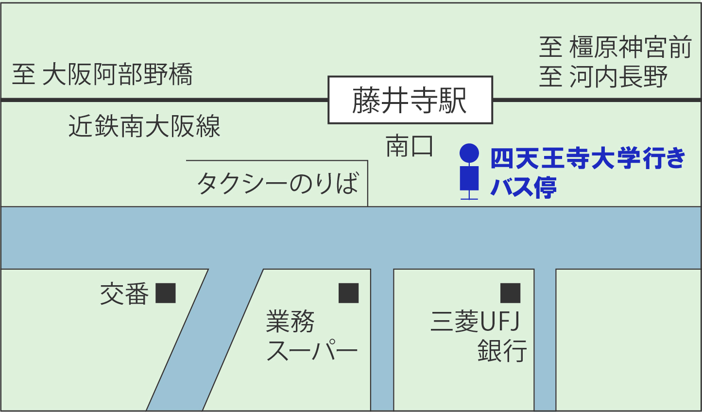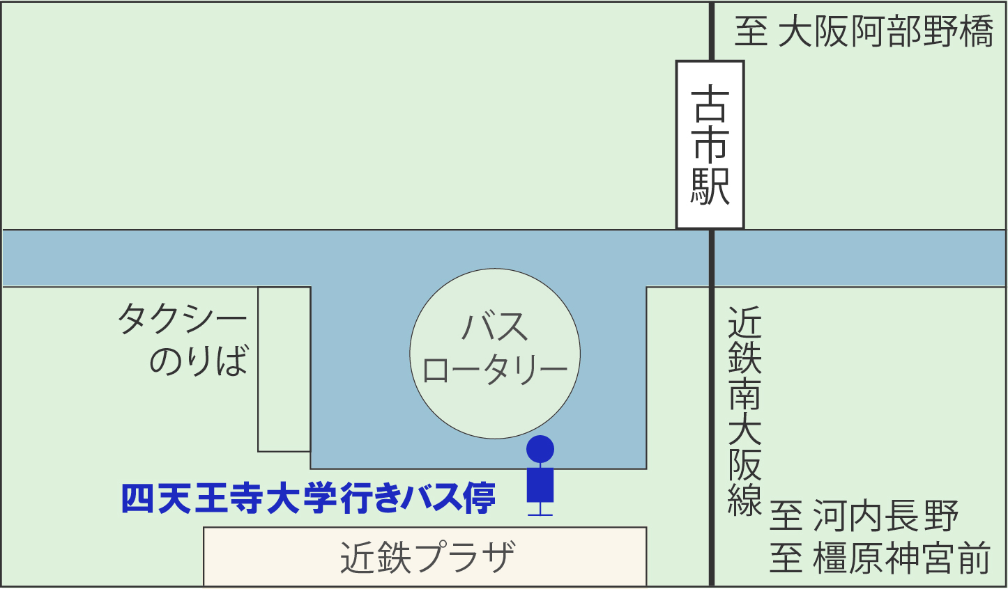 本学最寄り駅の近鉄南大阪線「藤井寺」駅・「古市」駅から本学へは近鉄バスが運行しています。