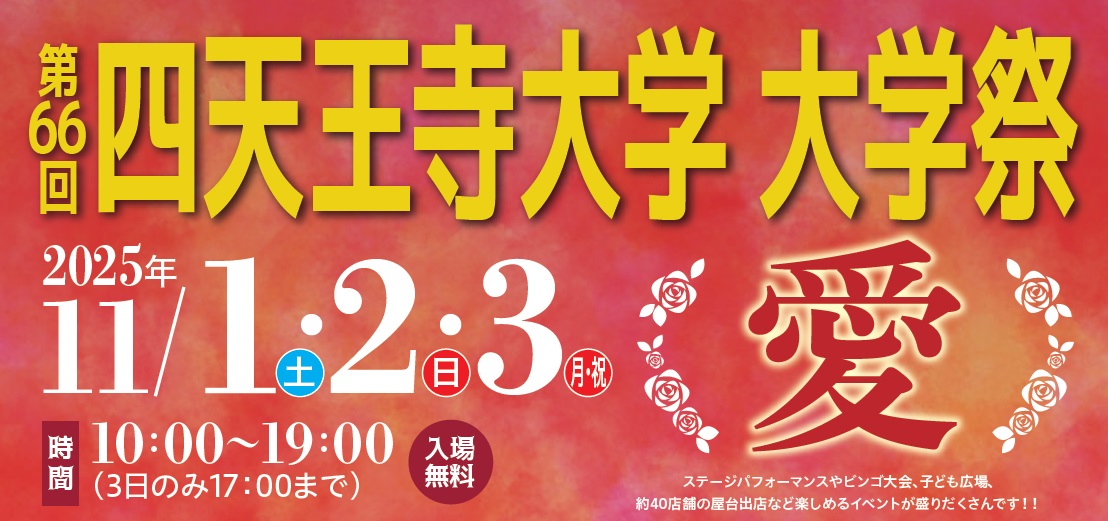 「愛」という漢字には、「絆を大切にする」という意味があり、大学祭に来ていただいたすべての方との絆を大切にし、すべての人が温かいきもちで帰っていただけるような大学祭にしたいという思いを込めて、「愛」をテーマに決定しました。