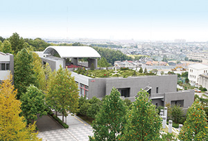 This office is also available for graduates of the university. They visit here to share information and enjoy interactions. With extension classes and lectures held for the public, this brightly sunlit, glass-paned satellite campus is always bustling.