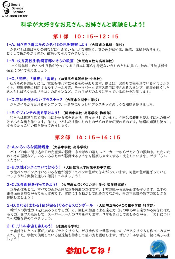 | 後 援 | 国立研究開発法人 科学技術振興機構(JST) 羽曳野市教育委員会 藤井寺市教育委員会 |