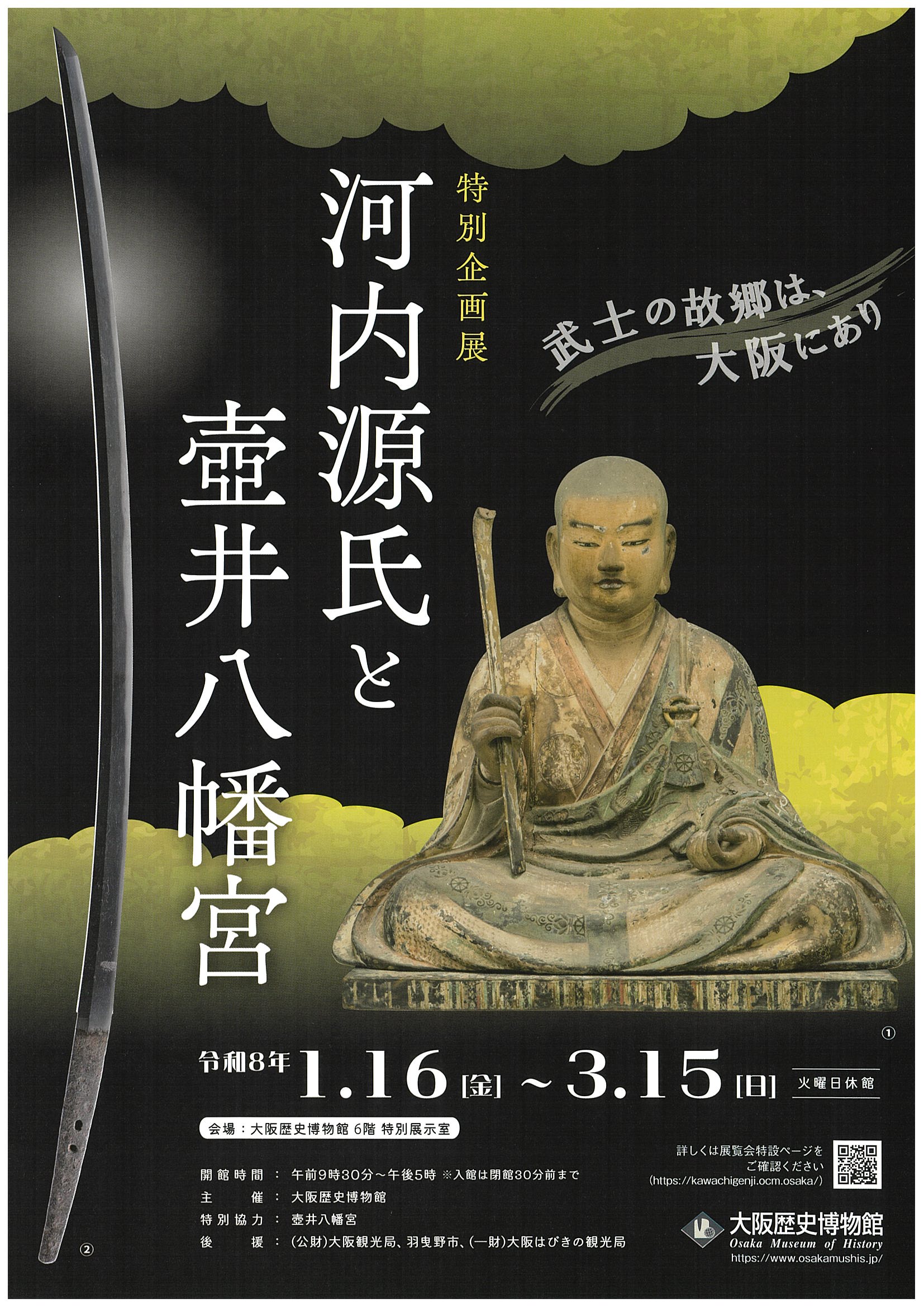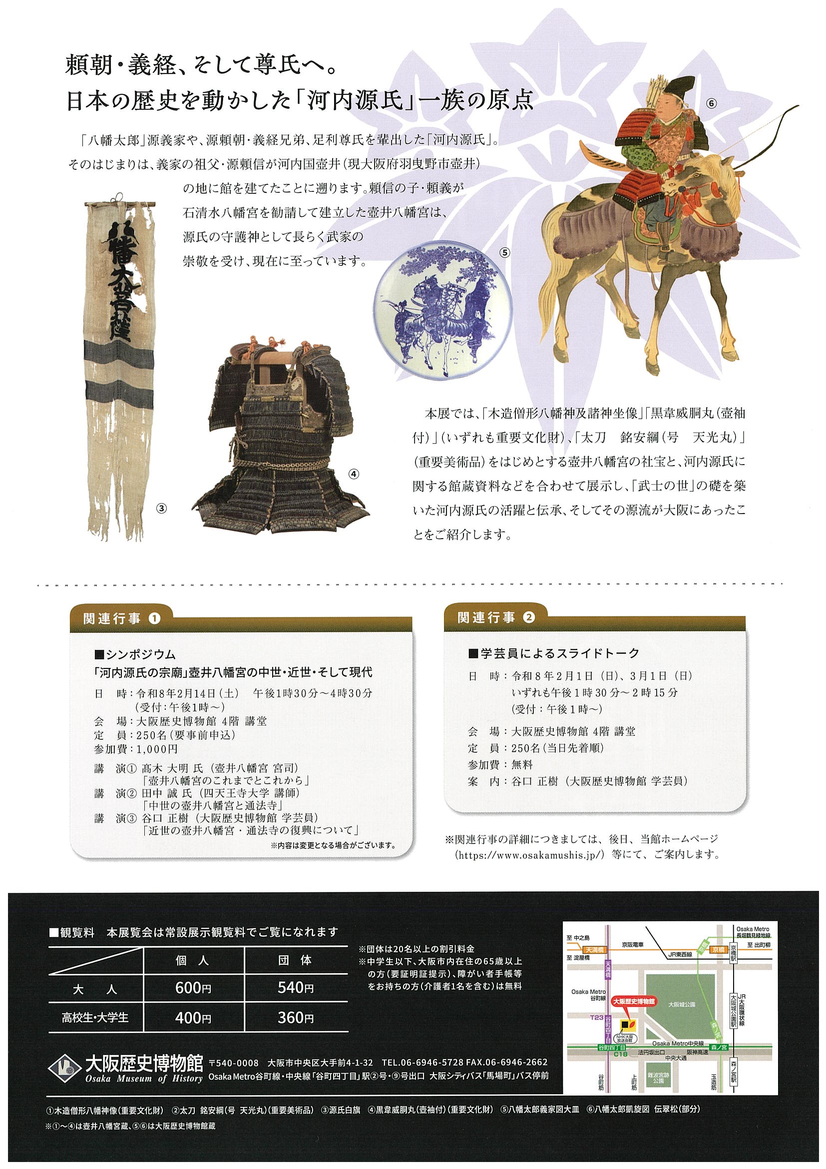 特別企画展「河内源氏と壺井八幡宮」については、特設ページhttps://kawachigenji.ocm.osaka/ またはチラシを参照ください。