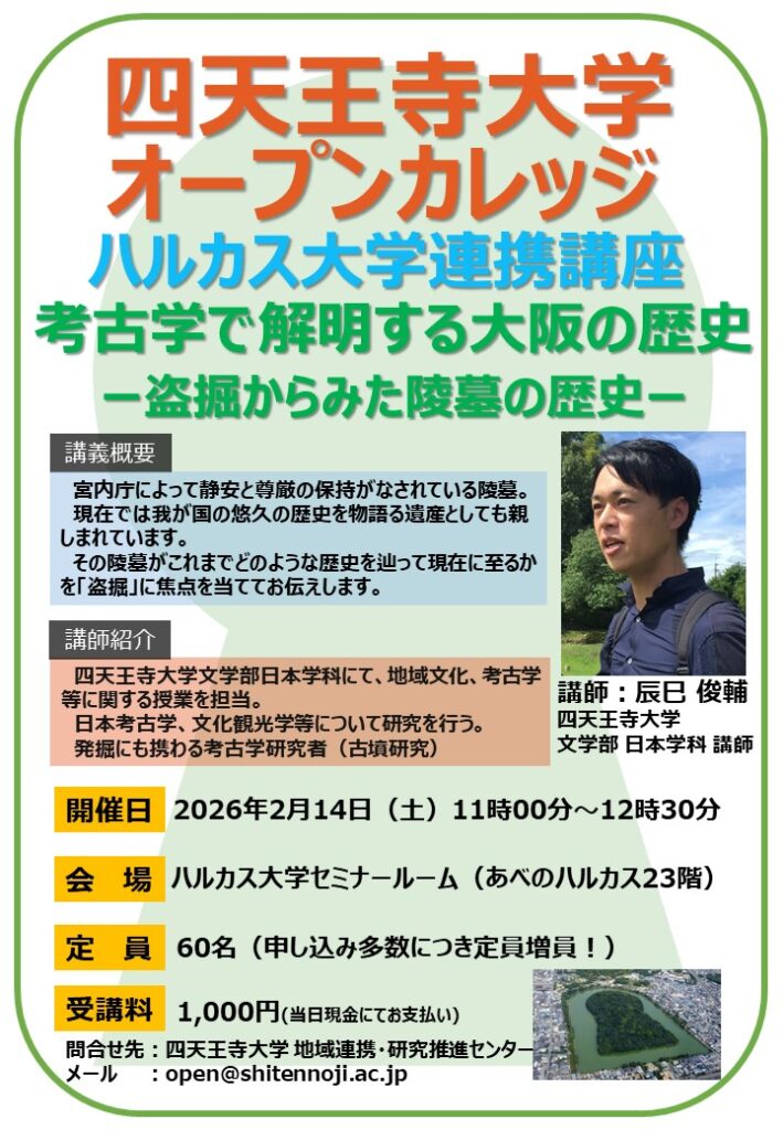 2月14日(土)にオープンカレッジにて、ハルカス大学連携講座「考古学で解明する大阪の歴史(2) セミナー編」を開催いたします。