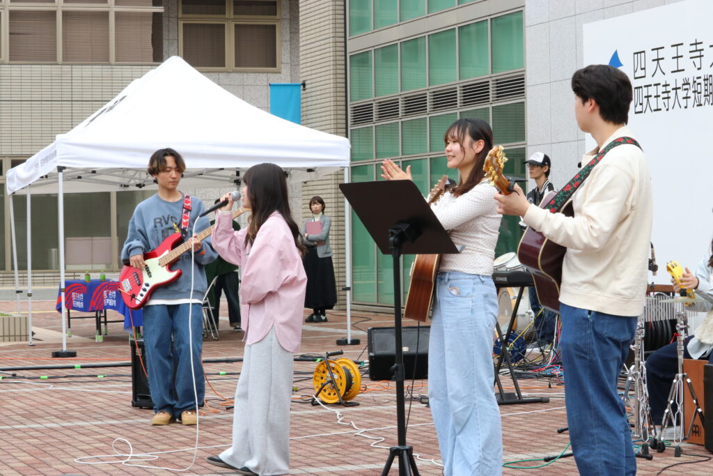 羽曳野市出身の演歌歌手「浅田あつこ」さんによるステージ、吉本興業のお笑い芸人「アマルフィん」による漫才、シャボン玉パフォーマンス(しゃぼたあわお)をはじめ、地域のキッズダンススクール(HIRO DANCE CAMPANY)や地域で活動しているバンド(モンキーバード)のライブ、四天王寺東高校ダンス&チアリーディングパフォーマンス、本学のアコースティックバンド部とフォークソングクラブのバンドライブ、本学和太鼓部の圧巻の和太鼓演奏などが勢ぞろい‼