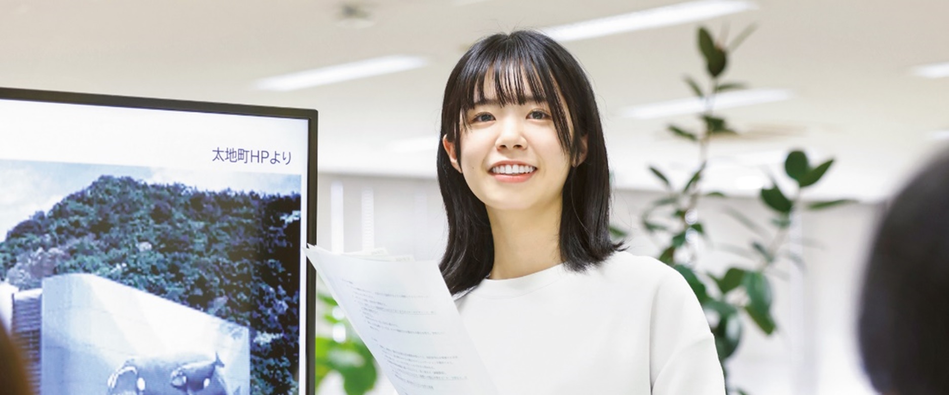 地域と世界の調和を図りながら、地域活性化に取り組む公務員が今、社会から強く求められています。公務員をめざす方だけでなく、地域社会の発展や社会貢献に関心を持つ方々にとっても、公共経営専攻は理想の学びの場です。ここでは、学生たちが教員と協力し、共に成長する機会が豊富に用意されています。