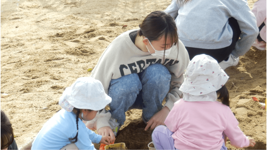2セメスター(1年生冬学期)のハローナーサリーでは、保育現場に触れる機会を提供します。令和5年度は、四天王寺悲田院こども園を訪問し、実際の保育現場や子どもたちとの触れ合いの体験を行います。