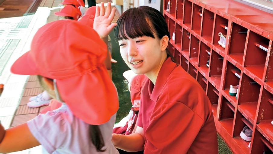 保育実習Ⅰ・Ⅱ・Ⅲやハローナーサリー、インターンシップなど、多くの実践的な科目を用意しており、教育現場での体験を通して学びます。また、「保育者論」などの専門科目と現場体験の往還により、地域社会や保護者との連携に対する広い視野と探究心を育成します。