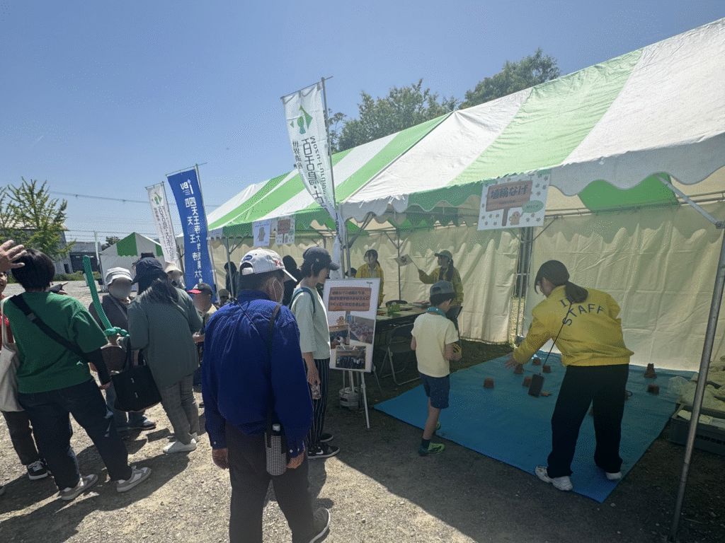 気軽に古墳について学べる折り紙でのはにわ作りや古墳の塗り絵などを発案、実践するとともに、はにわ輪投げ、缶バッジづくり、峯ヶ塚古墳に登るコーナーの運営にも携わりました。