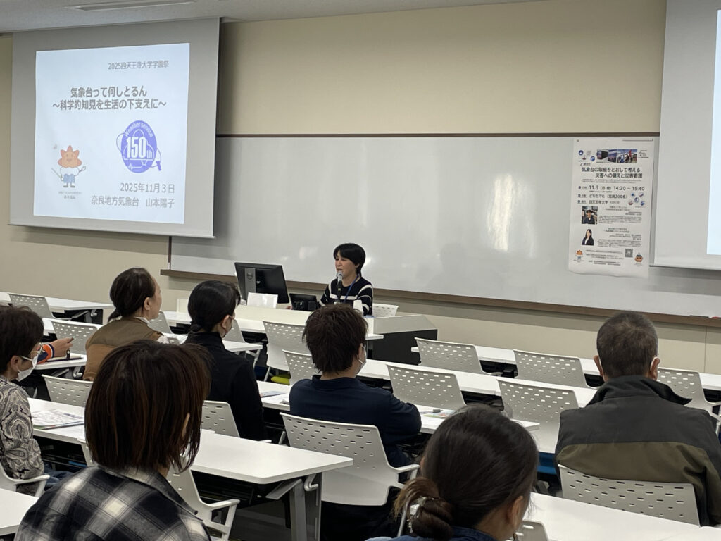 四天王寺大学地域連携・研究推進センター みらい科学教育推進室は、11月3日(月・祝)に本学大学祭と同時開催で講演会「気象台の取組をとおして考える災害への備えと災害看護」を開催しました。