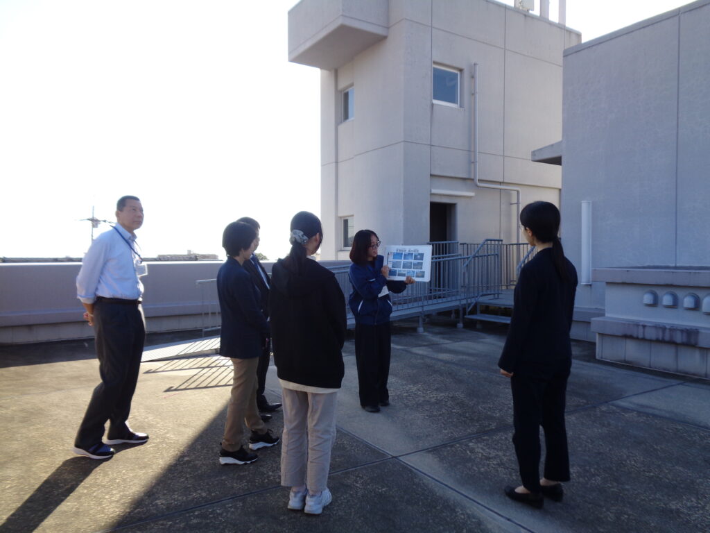 その後、気象台内の見学時間を設けていただき、屋上に設置された観測設備や、予報官をはじめとする職員の方々が実際に業務を行っている部屋などを見学しました。