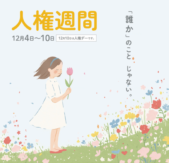 12/4(木)~12/10(水)は人権週間です。人権について考えてみませんか。人権問題の解決には、互いの人権を尊重し合うことが大切です。
