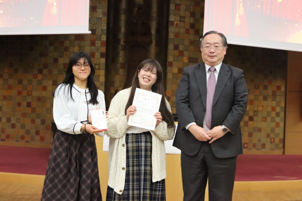 表彰後は羽曳野市長、藤井寺市副市長からそれぞれの市長賞、学長から最優秀賞について講評のうえ、閉会の辞として後援会会長より総評を頂きました。