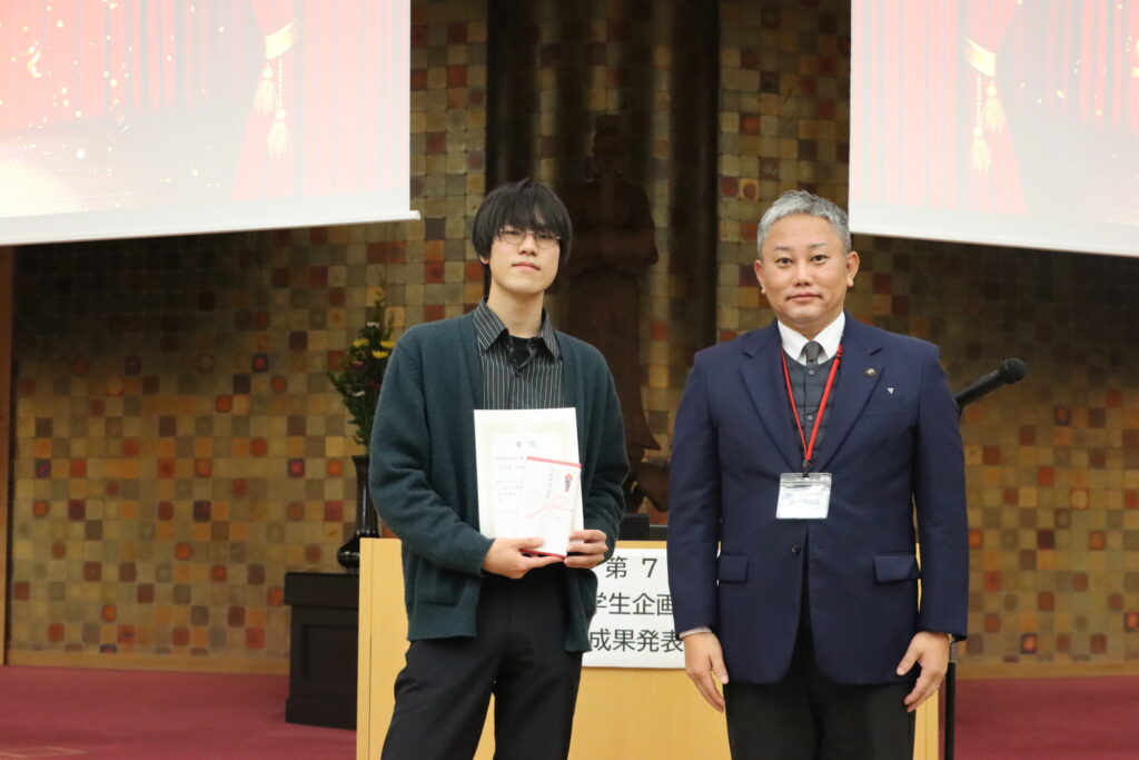 | 羽曳野市長賞 | ご当地VTuberプロジェクト (経営学部経営学科1回生) | 【羽曳野市課題】 若者世代にささるまちの魅力とその伝え方 |