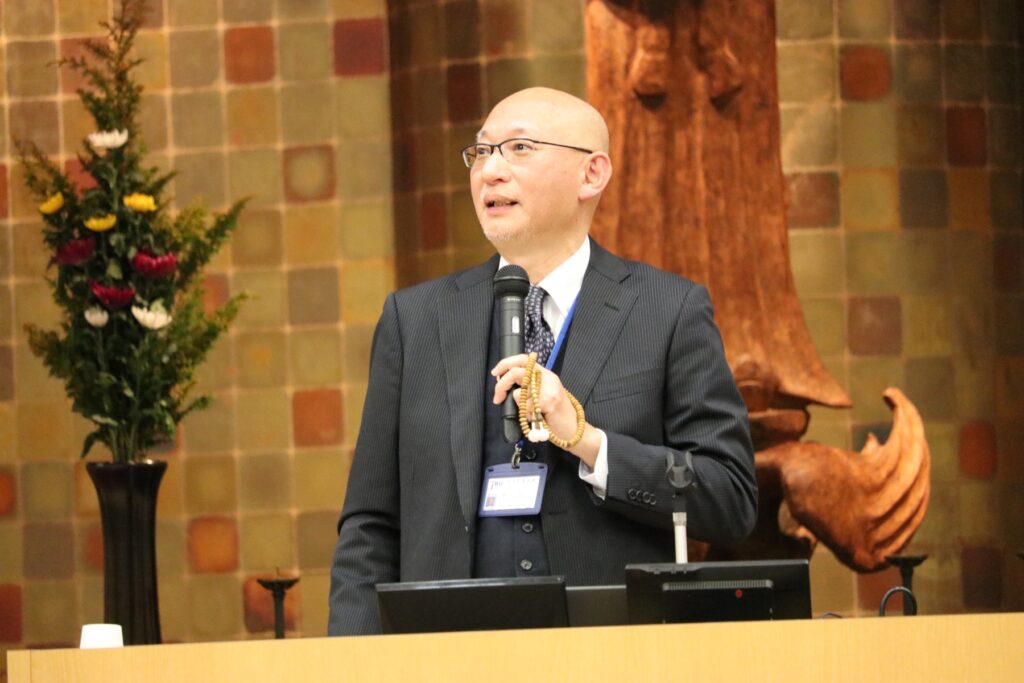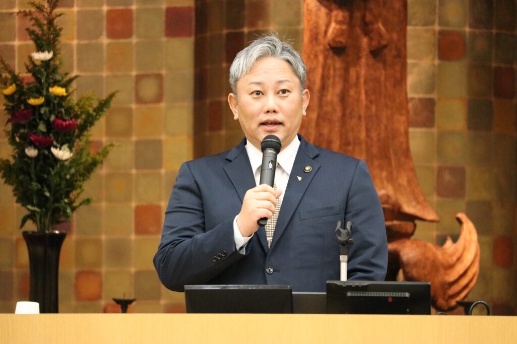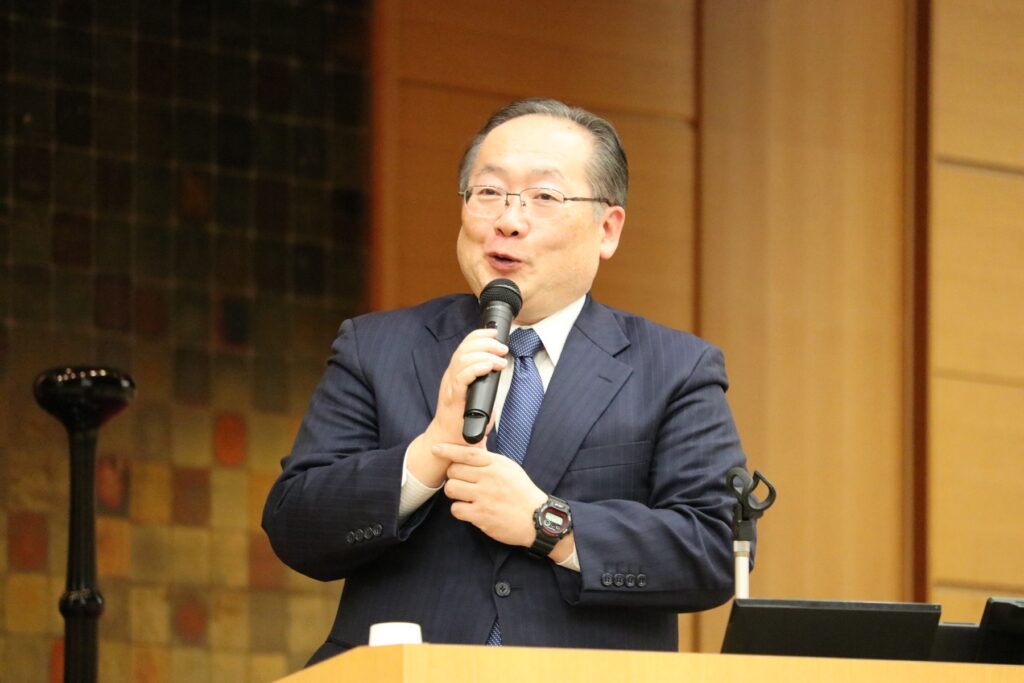 第一部では、本学で開催されている生涯学習講座「たいし塾」において、豊富な知見とやさしい語り口で高い支持を集めている社会学部社会学科長の藤谷教授が、聖徳太子の生涯について、初めての方にもわかりやすく解説しました。
