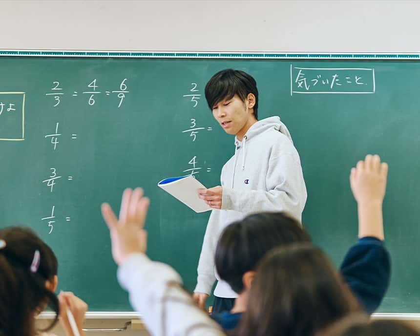 野球部を引退した高校3年生の夏休み、初めて真剣に進路を考えたんです。仕事につながる大学に行きたいと思っていて、「じゃあどんな仕事があるだろう?」と想像したときに興味をもったのが教師でした。私自身が友達ありきの人生を歩んできたので、今の子どもたちにも一生自慢できるような友達をつくってほしいと思ったこと、そして毎日さまざまなことが起こる教師という仕事が楽しそうに思えたことが理由です。四天王寺大学の教育学部に進学した野球部の先輩から話を聞く中で、楽しそうな大学生活を送れそうだなと感じて、同じ大学に進学することにしました。