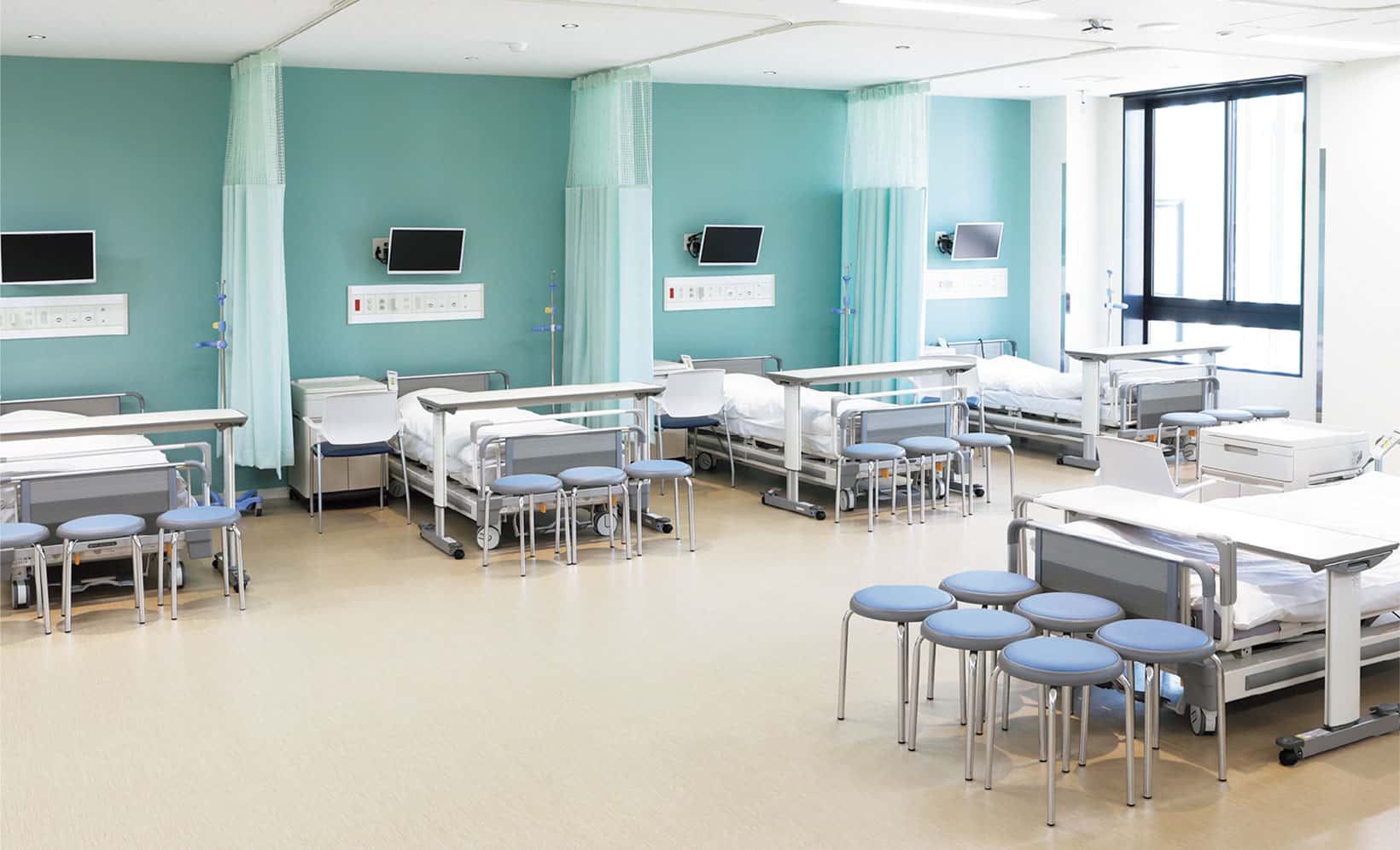 実際の病棟を再現した臨場感あふれる看護実習室、