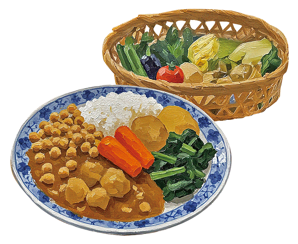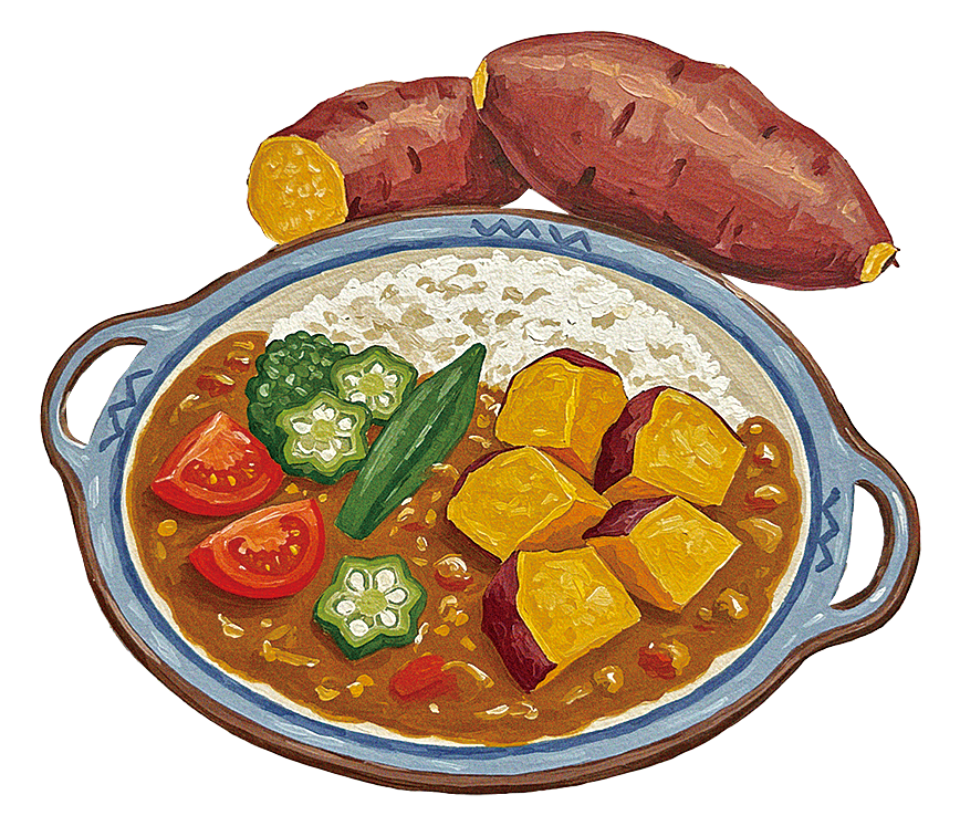 ちょっと甘めのカレーに、さつまいもと島野菜。母がよく作ってくれた、南の風を感じる味。