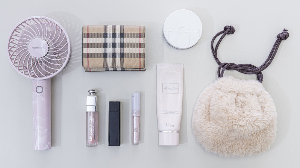 ハンドクリームです。手が荒れやすいのでこまめに塗り直しています。今はプレゼントでもらったものを使っていて、香りがお気に入り。夏場はハンディファンも必ず入れています。