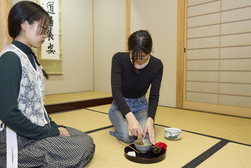 [新本さん]ほんとにそうですね。大学祭でもカフェ形式で抹茶と和菓子のセットを提供しました。お菓子・抹茶の発注や予約管理、提供オペレーションの整理、そしてお茶のお点前を均一化することが準備の肝です。昨年も大盛況で行列ができたので、きちんと準備をして今年はうまく回せられたと思います。普段は和気あいあいとした雰囲気なんですが、イベント時はスイッチをうまく切り替えて臨みんでいます。