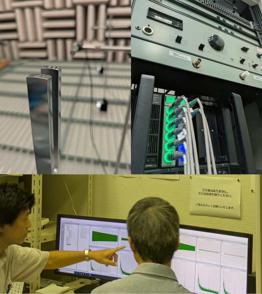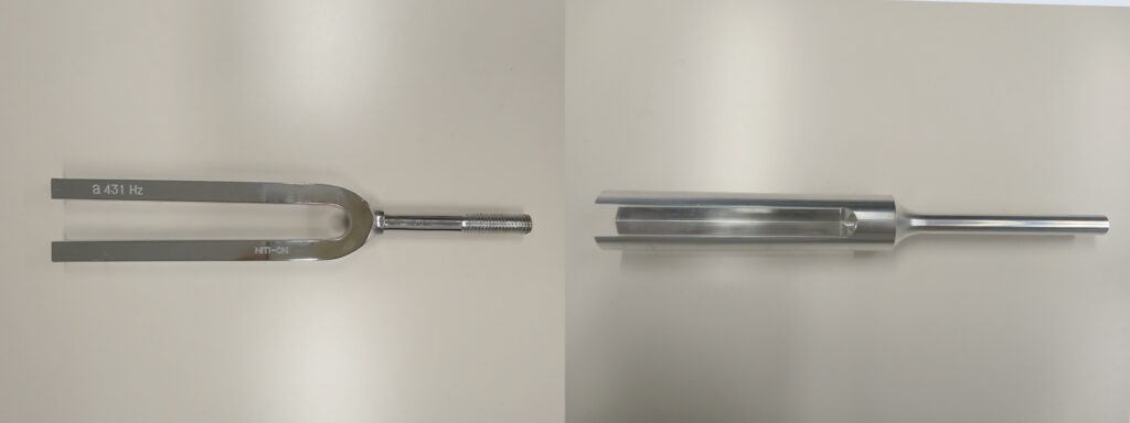 また、理科教育に関わる科学事象の基礎的研究にも取り組んでおり、特に「音」に焦点を当てた追究を進めています。ご存じのように、「音」は小・中・高等学校を通して扱われる代表的な科学事象の一つですが、例えば、「音に関わる特性を指導する際に多用される教具『音叉(おんさ)』の周りにはどのような音場が形成されるのか」といったことを明らかにしようとしています。これは、「音叉周辺にどのような音場が形成されるか」が、学校現場で指導にあたる教員の間でもあまり意識・理解されていない実態を課題視して始めたもので、音叉メーカーとも連携して改良型音叉を試作しながら、現象理解に向けた評価を進めています。