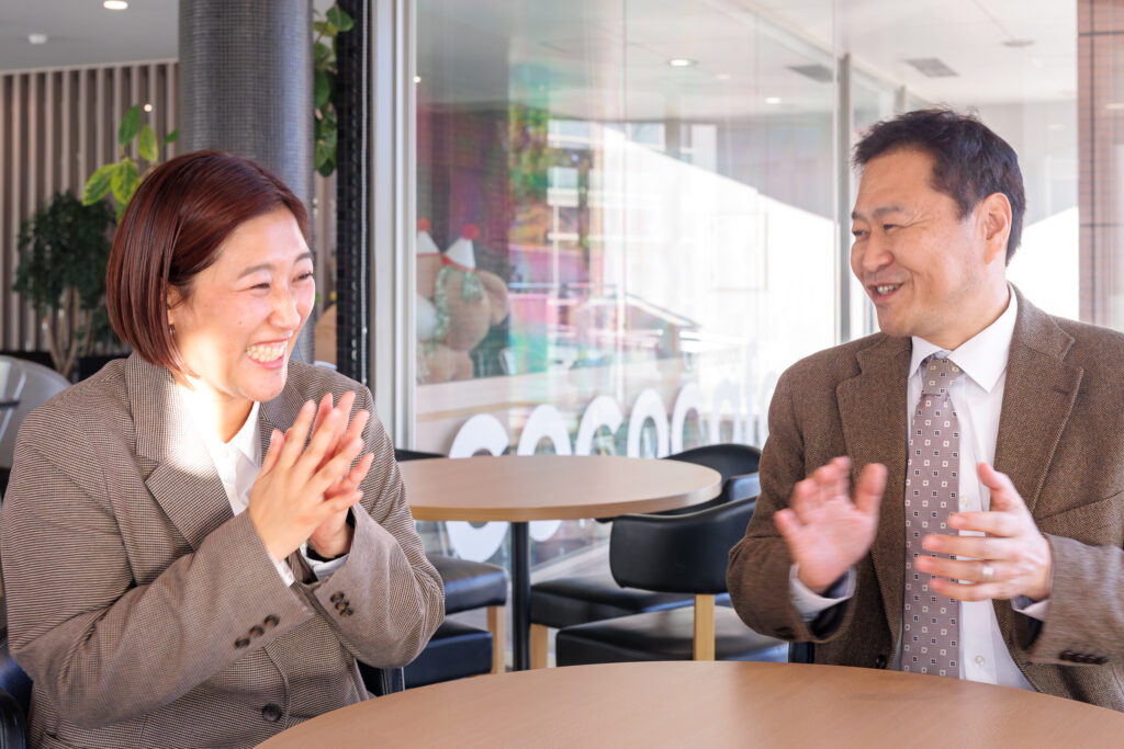 四天王寺大学を卒業し、現在は同じ会社で働く簑田さんと濱永さん。仕事を通じて関わる中で、お互いが四天王寺大学出身だと偶然知り、驚いたそうです。今回は先輩であるお2人に、大学時代の思い出や社会人になって役立っている経験、卒業してから気づいた母校の魅力などを語ってもらいました。