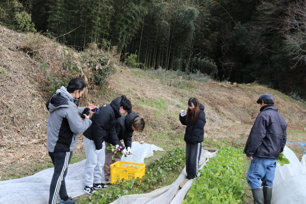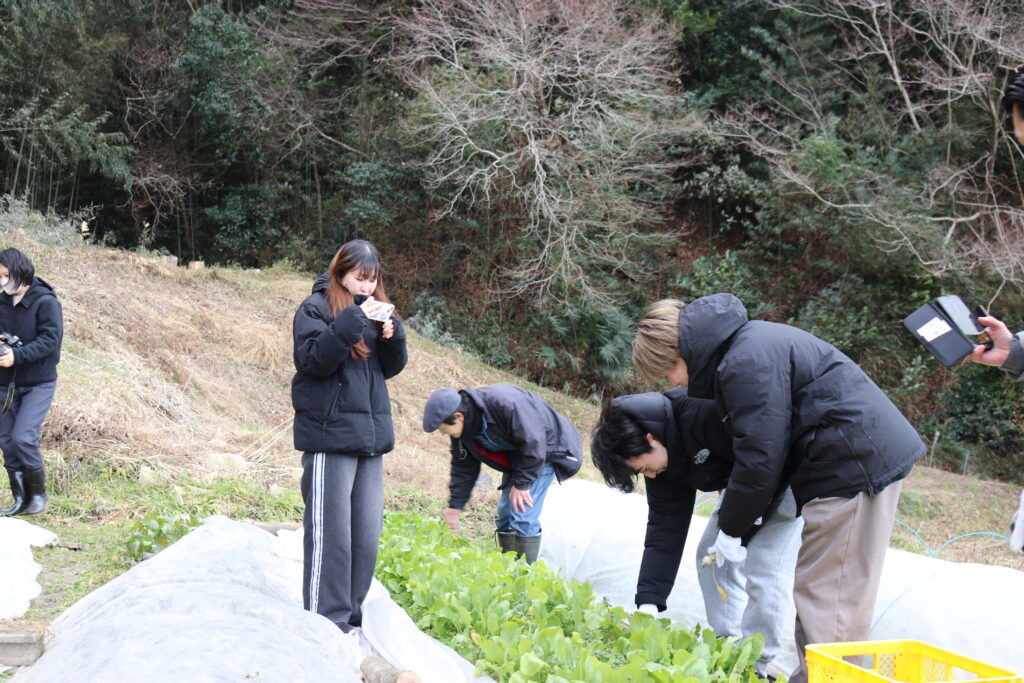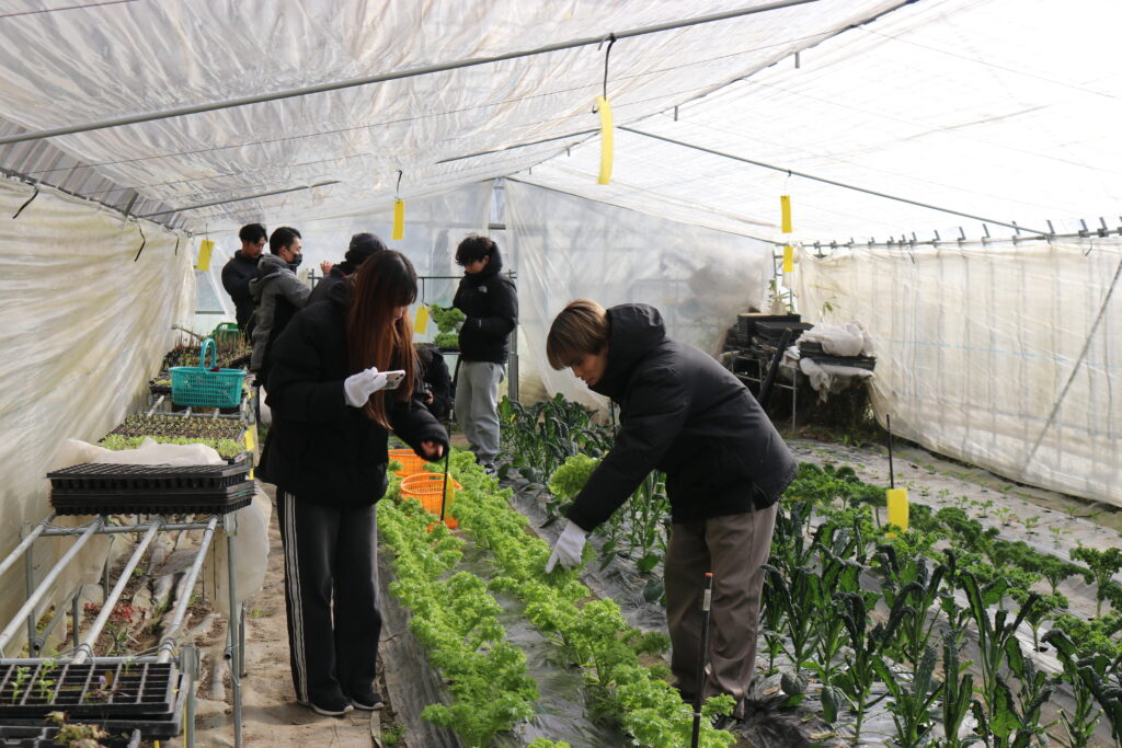 一見難しそうな野菜収穫ですが、代表の峰さんが丁寧に収穫方法を教えてくださるので、学生も簡単に収穫することができました!