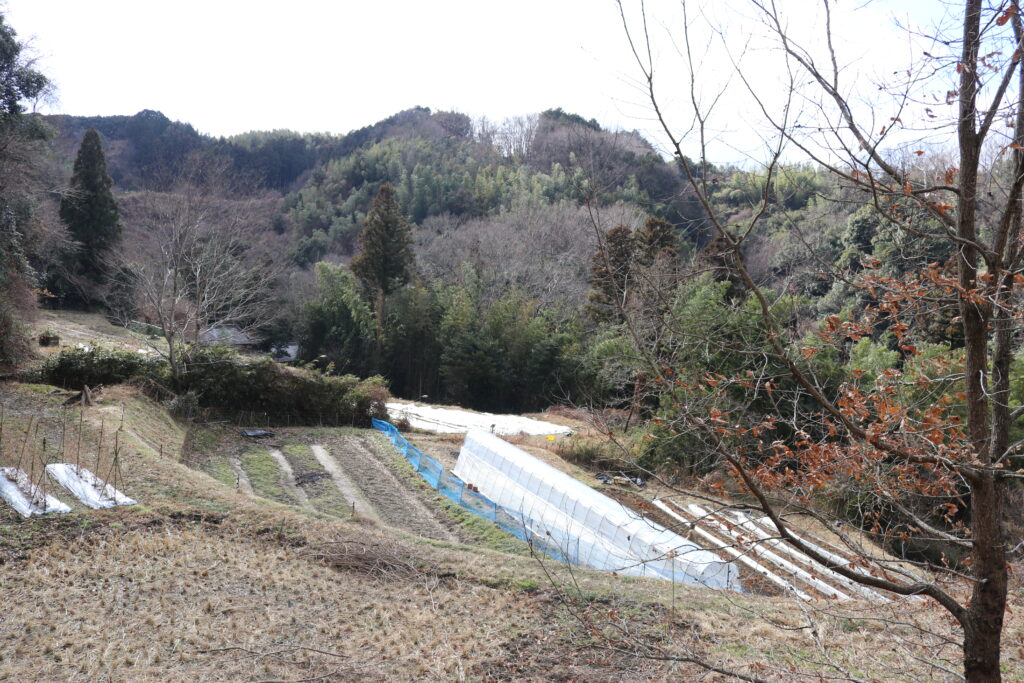 かうち彩園の畑は、山の裾野で農業を行っているため畑が細いんです。それには大きな理由が。かうち彩園代表の峰さんは畑で使用する水に強くこだわられており、裾野で農業をすることによって葛城山からの水をひくことができるからだそうです。