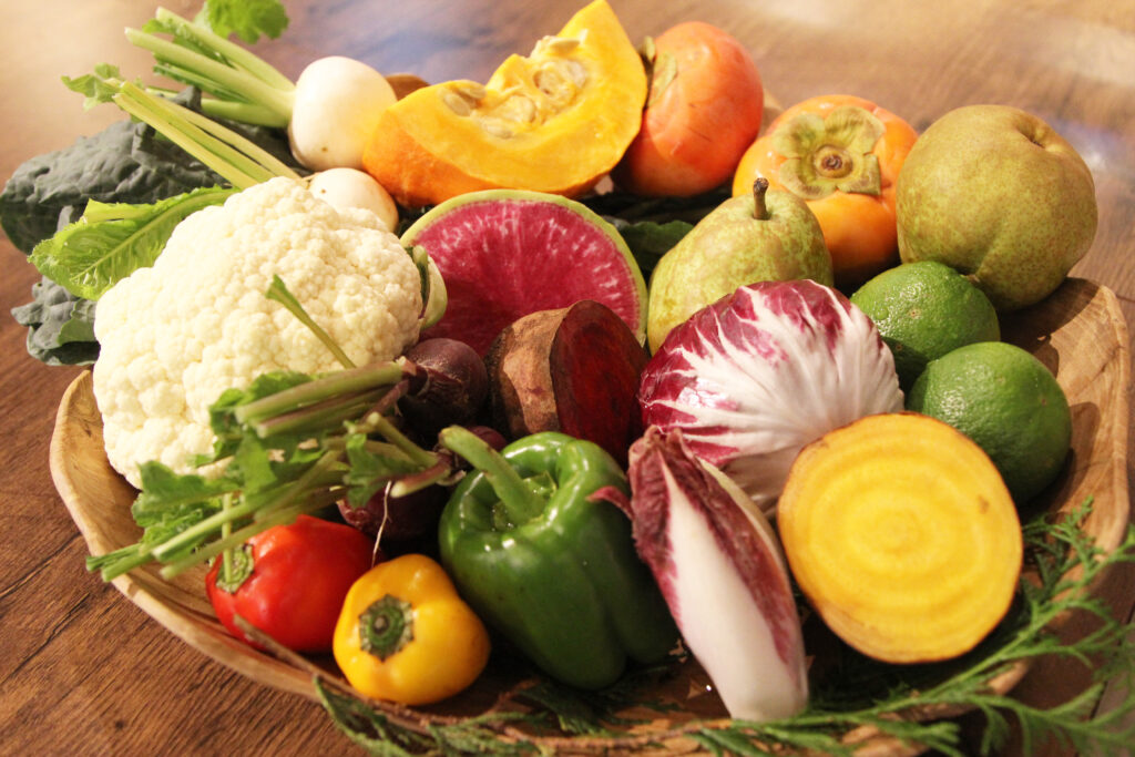 食材は出来る限り大阪産にこだわり、藤井シェフ自ら生産者さんを訪れて直接お話を伺って仕入れているそう。野菜も素材の魅力を味わってほしいという思いから、無農薬・有機栽培など自然の力で育ったものを厳選しています。