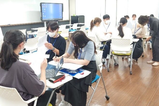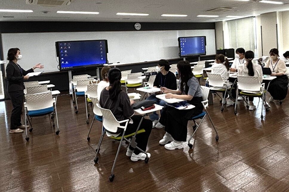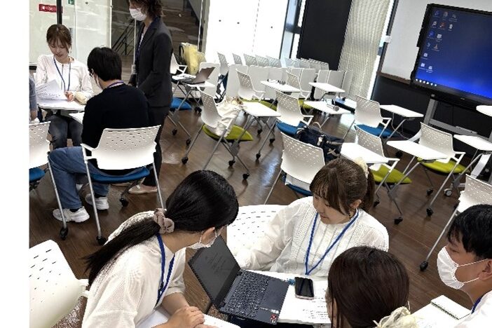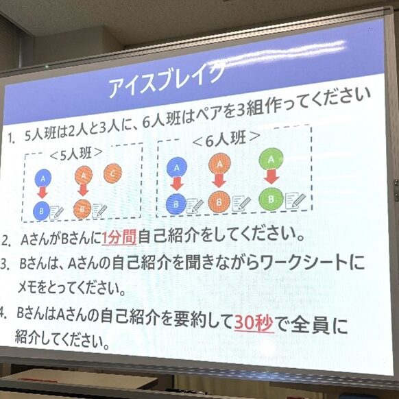 グループワークの前に、まずはアイスブレイクからスタート。学部が違う学生同士、最初は少し緊張した様子でしたが、「学部を選んだ理由」や「最近ハマっていること」などの話題を交えながら自己紹介をすると、場の雰囲気が一気に和やかに。笑顔や笑い声が広がり、自然と打ち解けてきました。