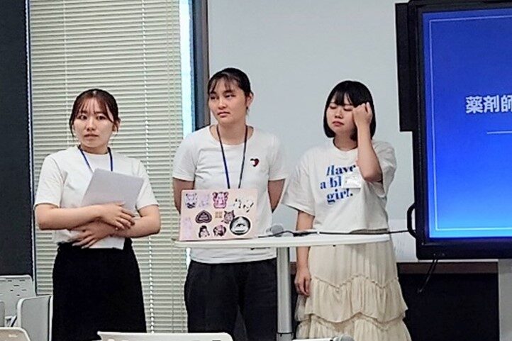 看護学部生は、看護師になるための演習と実習を経験していますが、薬剤師をめざす学生がどんな演習を行っているのか、その違いを知ることができました。