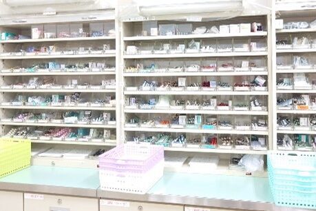 プログラムの前半は、大阪大谷大学の模擬薬局(調剤室)を見学しました。実際の薬局を再現しているように商品の陳列方法や調剤設備、カウンターなど、実務に即した環境に看護学部生たちは興味深そうに見学していました。