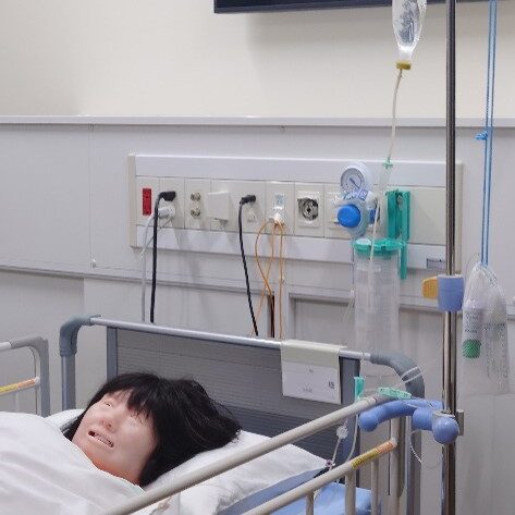 プログラムの後半は四天王寺大学へ移動して、看護棟シミュレーションセンターと実習室を見学しました。